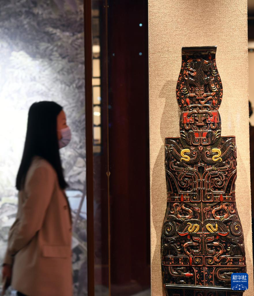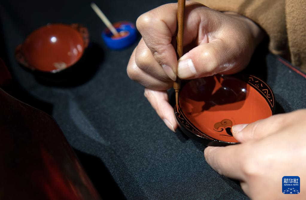 2021年10月18日,“高山流水——楚式漆器髹饰技艺暨漆艺创新作品展”在文化和旅游部恭王府博物馆开幕。本次展览以“高山流水”为主题,通过斫琴、上漆等技艺流程,向观众展示漆器髹饰技艺的魅力。 新华社记者金良快摄