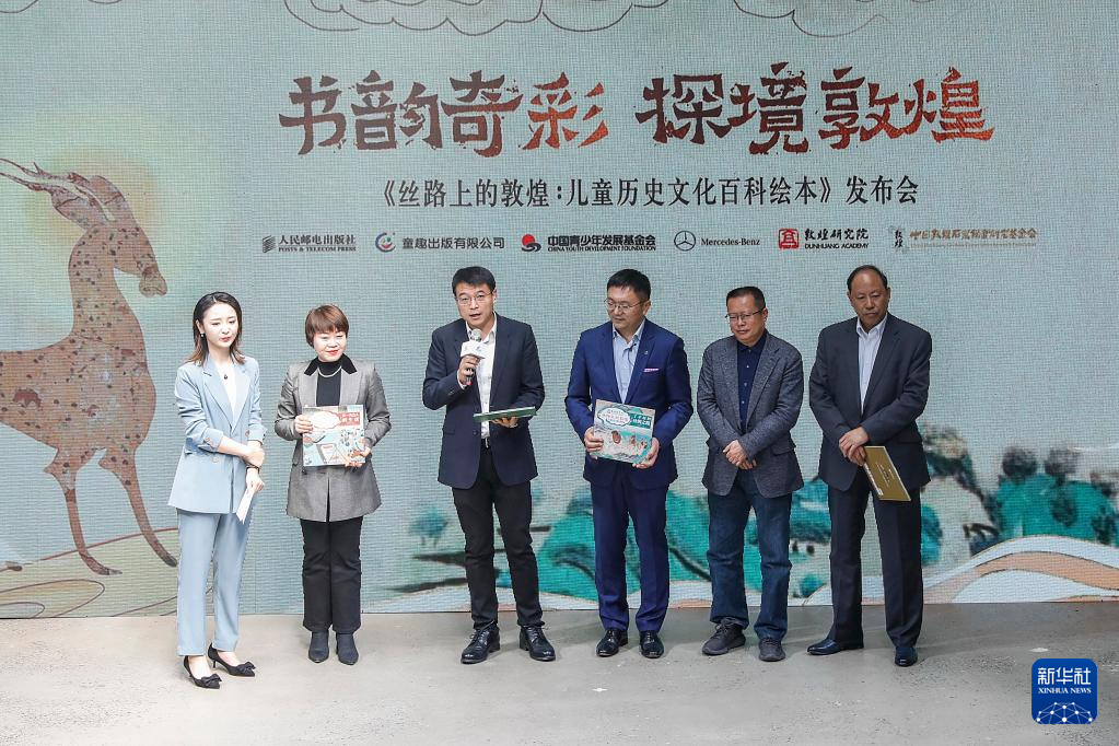 10月19日,与会嘉宾共同发布《丝路上的敦煌:儿童历史文化百科绘本》新书并做介绍。