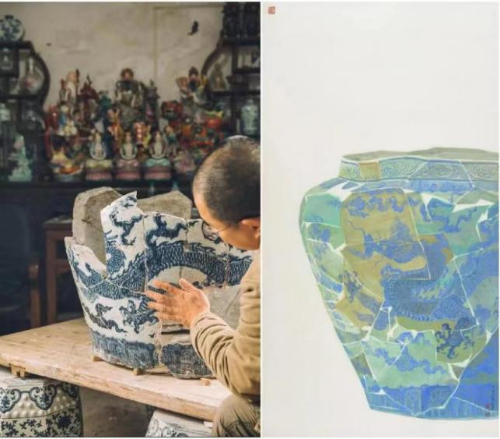此次展览展出的绘画作品包括宿利群2016年至今创作的古瓷器水墨、黑白墨道丨2020、青花瓷板画系列等40余幅绘画作品,及其所珍爱的陶瓷器物20余件。