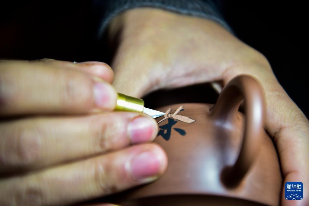 10月22日,吕继成在进行陶刻创作。 新华社记者王全超摄