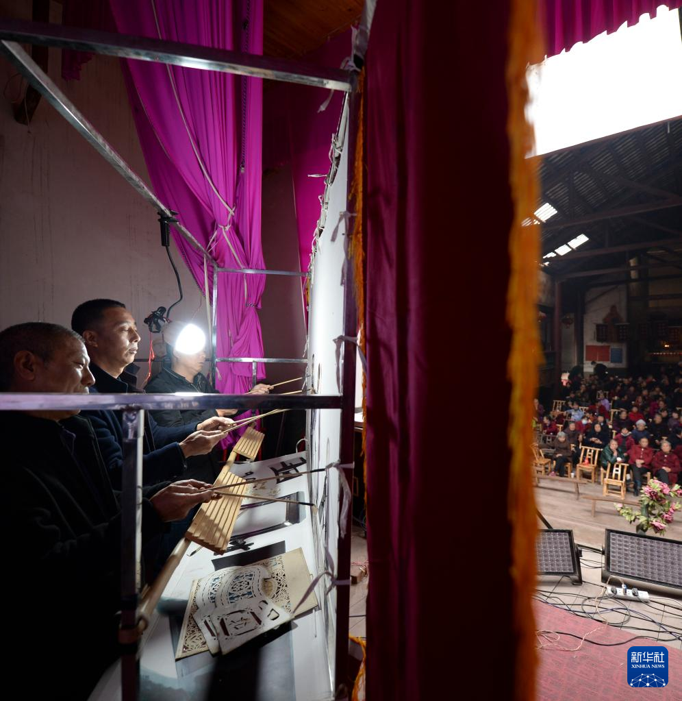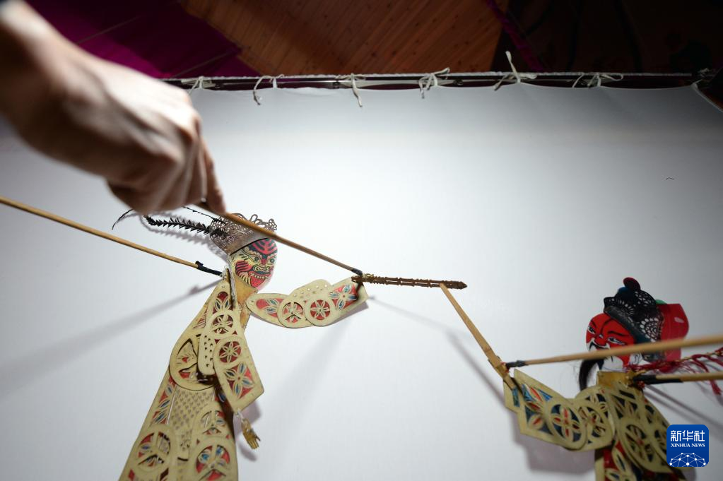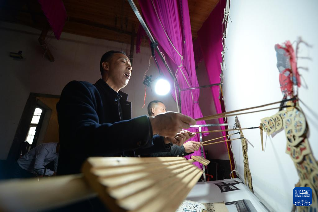 11月16日,在浏阳市沙市镇秧田村,宋伟军和剧团成员表演皮影戏。宋伟军是湖南省浏阳市镇头镇跃龙村人,14岁开始学习皮影戏,至今已37年,每年他都在长株潭等地演出百余场。近些年,除了演出传统的古装皮影戏,宋伟军还创作了倡导移风易俗的《酒宴后的风波》、关心留守老人的《小炒便饭》、以脱贫致富为主题的《勿忘本》等与生活息息相关、与时俱进的现代皮影戏剧本。表演中他辅以视频画面,将古老的光影艺术与电影视频结合,丰富表现形式,在寓教于乐的同时传播皮影文化。新华社记者 陈振海 摄