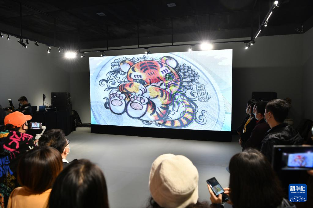 11月18日,与会者在北京举行的2022中国壬寅(虎)年金银纪念币品鉴会上观看纪念币宣传片。新华社记者 李鑫 摄