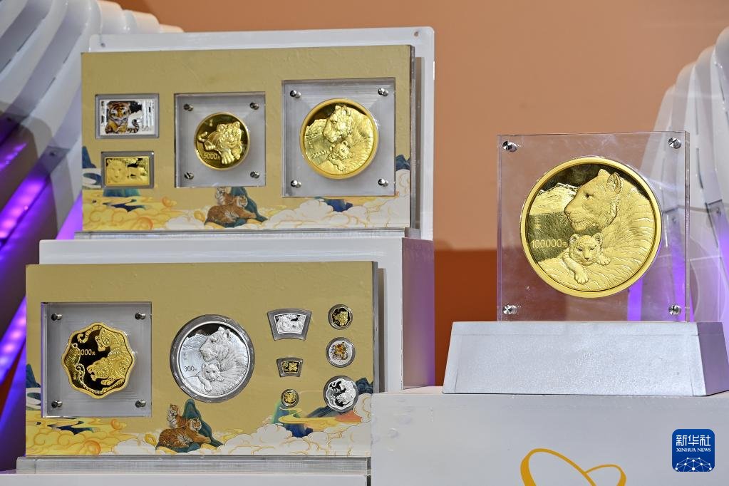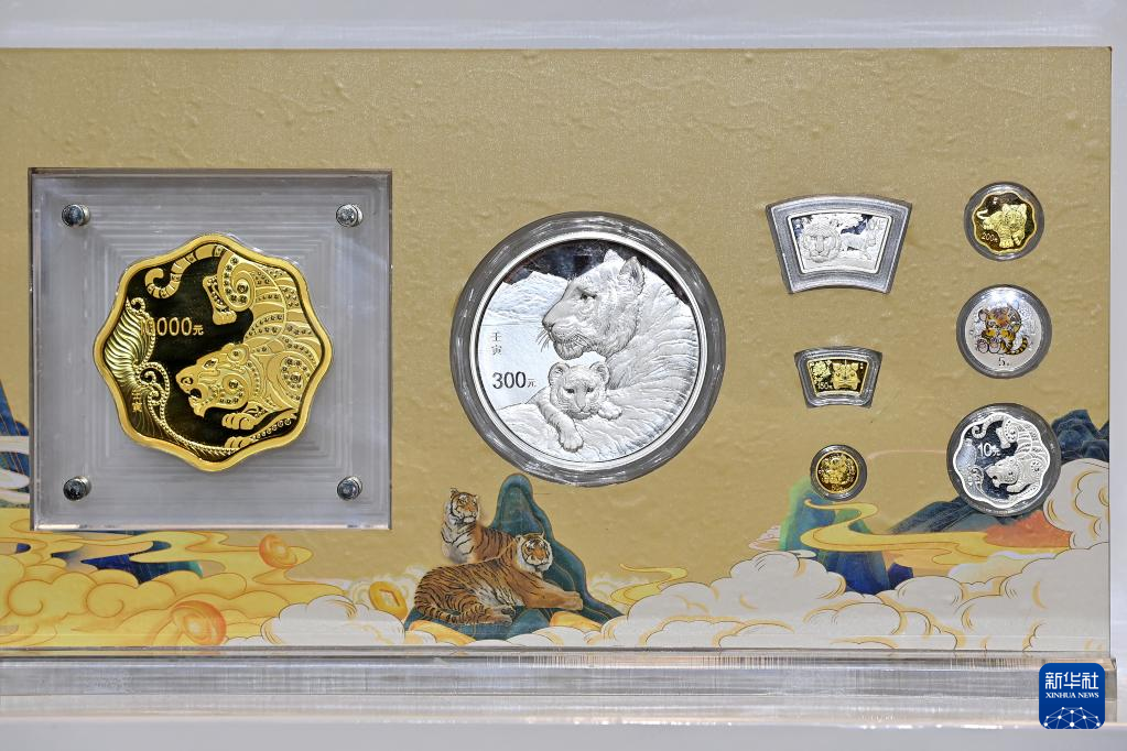 这是11月18日在北京举行的2022中国壬寅(虎)年金银纪念币品鉴会上拍摄的纪念币。新华社记者 李鑫 摄