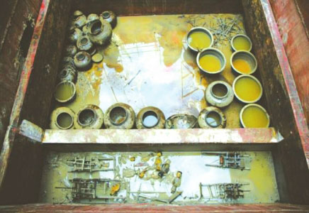 肖嶙说,2010年经报国家文物局批准,文保人员将其中体量较小的4件棺木搬迁到“饱水木质文物保护工场”,采用乙二醛复合液脱水加固保护脱水装置。文保人员用复合乙二醛脱水法复原修复了70件套精美漆木器。