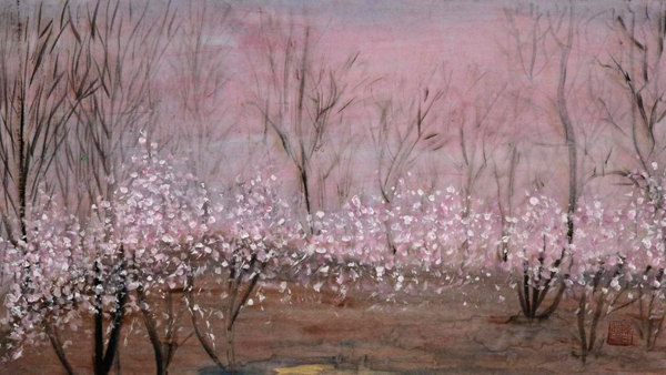 陈一心是一位富有才情的花鸟画家,他喜欢从杂乱无章的自然花草中,选取美的结构,同时又遵循着自然的规律,着力表现出自然造就美。其作品画面雅洁,流利婉转,散发出一种清新悠扬的艺术神韵,既有深厚传统根基,又有新水墨的创意精神,其笔墨技巧非常丰富。在构图、色彩、气韵上已经形成了自己独特的面貌。他笔下桃花、杏花、梅兰竹菊,有的枝干弯弯折折、自然天成,有的花明叶暗,舒展自如……这些都是自然造就的美,只不过被画家随手拈来,将色彩、空间、构成等元素融合于水墨的点线之间,运用自己超强造型能力,成功完成视觉形象的重塑。