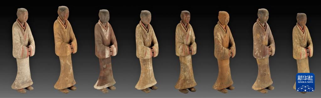 薄太后南陵外藏坑出土的彩绘陶俑(2019年8月26日摄)。新华社发