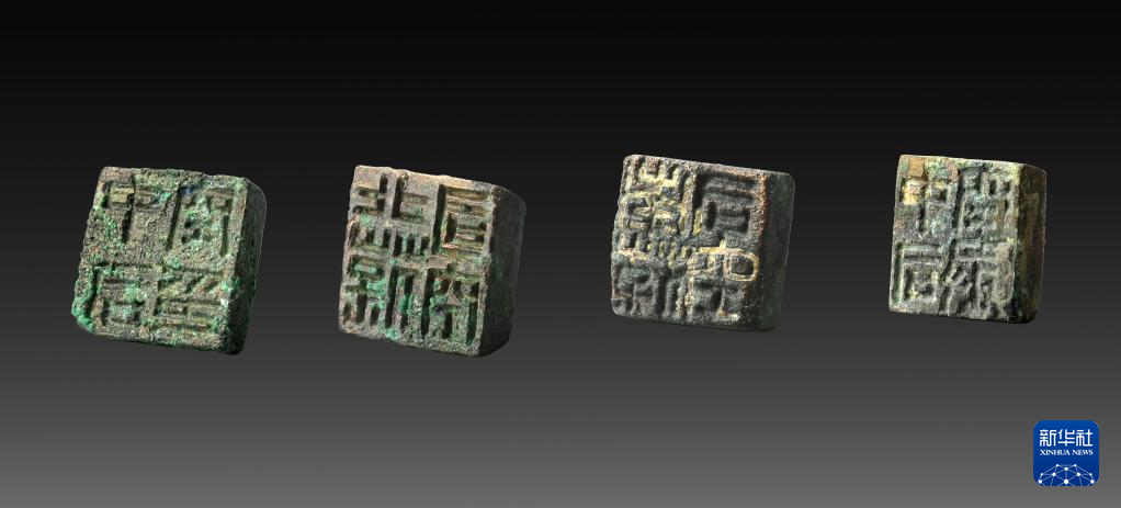 江村大墓外藏坑出土的印章(2020年5月7日摄)。新华社发