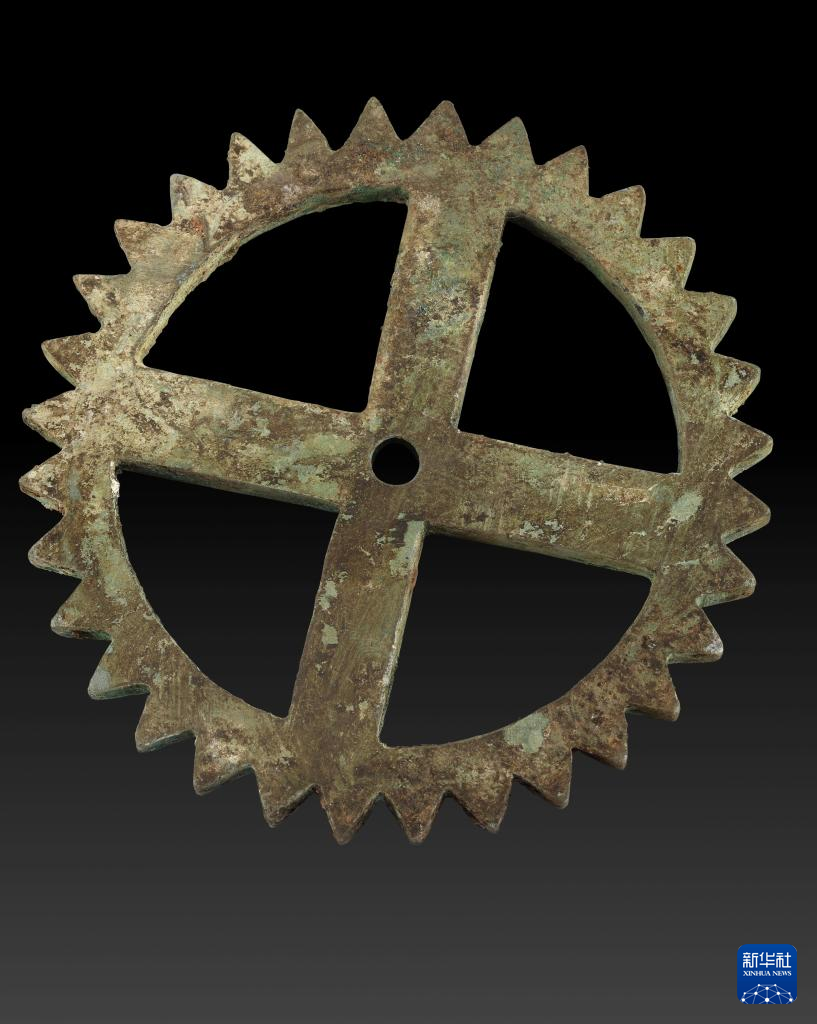 江村大墓外藏坑出土的铜齿轮(2020年5月7日摄)。新华社发
