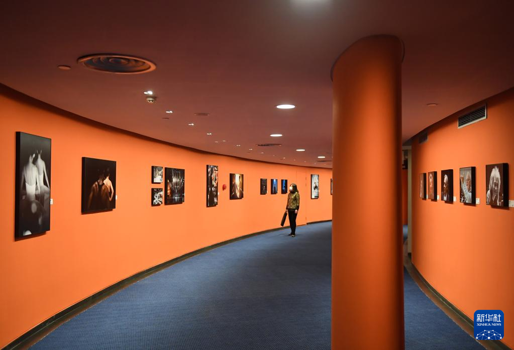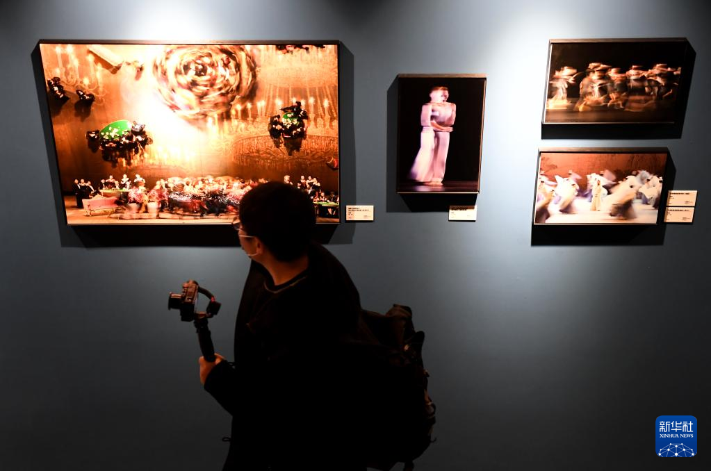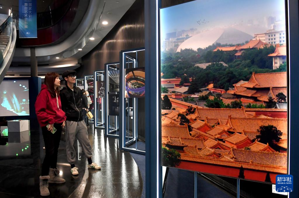 12月22日,观众在观看《幕·光——国家大剧院舞台艺术摄影展》。该展览展出作品百余张,在光影间带观众从另一个侧面了解多元、立体、生动的国家大剧院。
