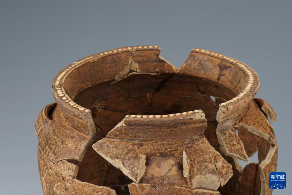 大树根古墓群周边采集的乳钉纹陶器。新华社发(北海市博物馆供图)