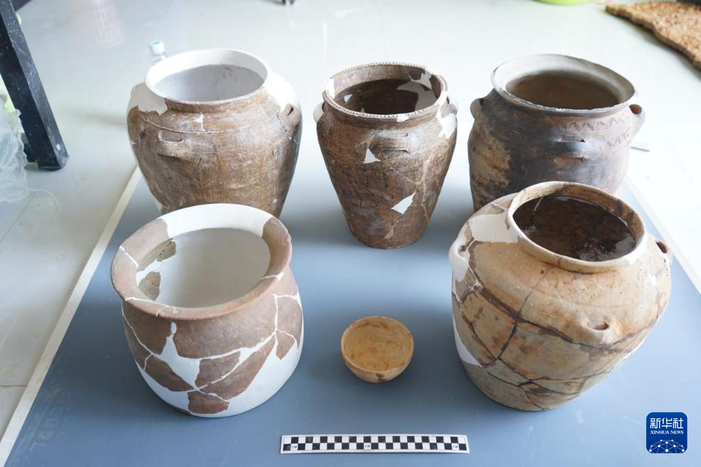 大树根古墓群周边采集的陶瓷器。新华社发(北海市博物馆供图)
