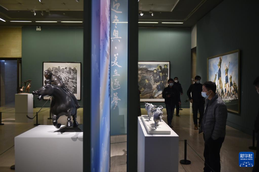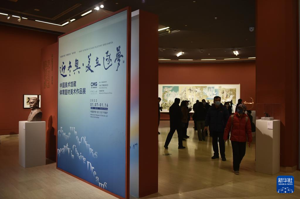 当日,中国美术馆“典藏活化”系列展:“迎冬奥·美在逐梦”中国美术馆藏体育题材美术作品展在北京中国美术馆开幕,共展出作品160余件。