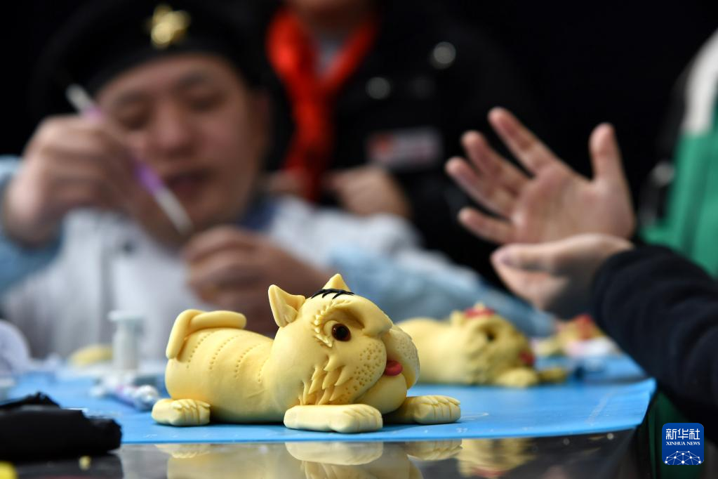 春节临近,山东青岛的民间面食手工艺人在传统民俗基础上,创作出多种以生肖老虎为题材的花饽饽,形态各异,惹人喜爱。
