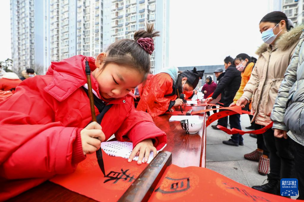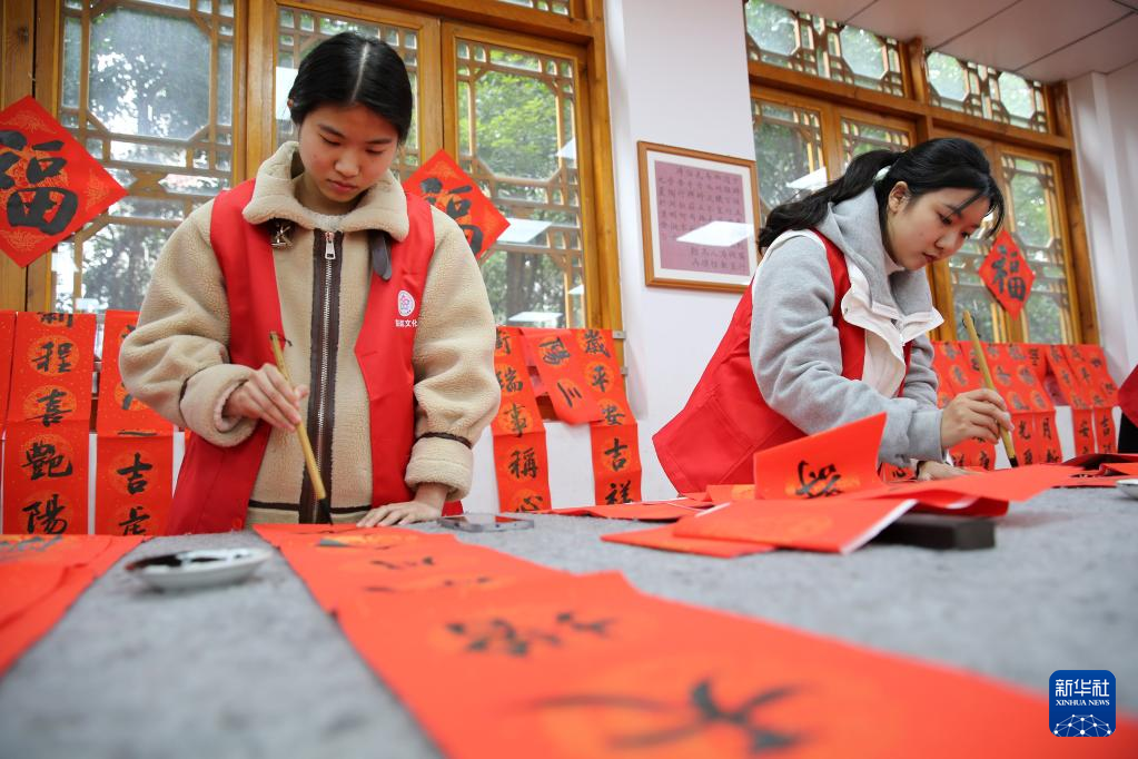 新春临近,人们开始写春联、送福字,在祝福声中迎接农历新年。