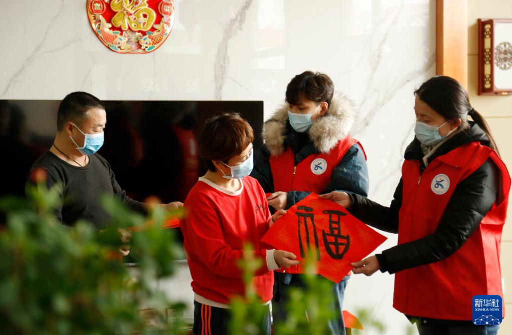 1月19日,河北省邢台市南和区三思镇南韩村党员志愿者将春联和福字送到村民家中。新华社发(张驰 摄)