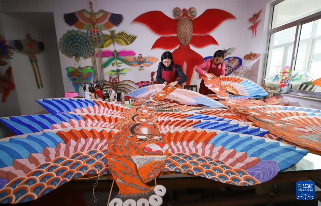 1月25日是北方小年,山东潍坊寒亭区杨家埠村的风筝、年画艺人们赶制年画和各类风筝,喜迎即将到来的虎年春节。