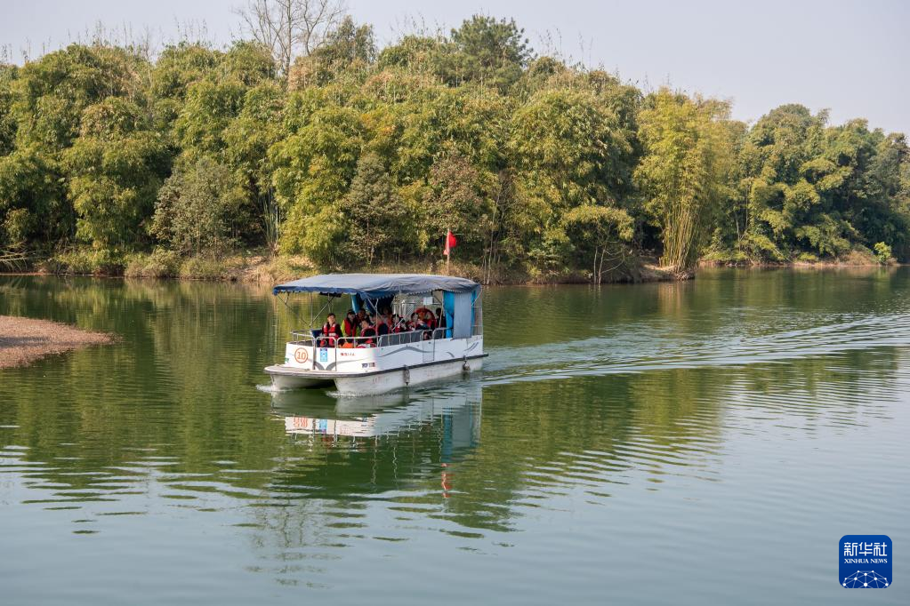 3月8日,游客在大足区龙水湖风景区泛舟游玩。