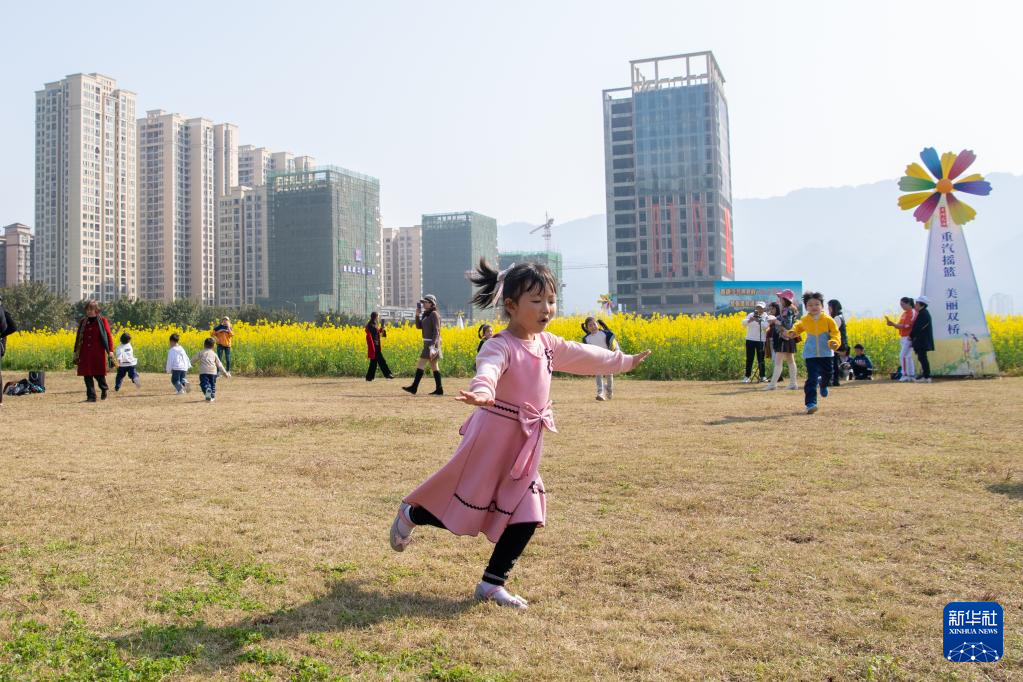 3月8日,小朋友在大足区中央城市花海公园玩耍。