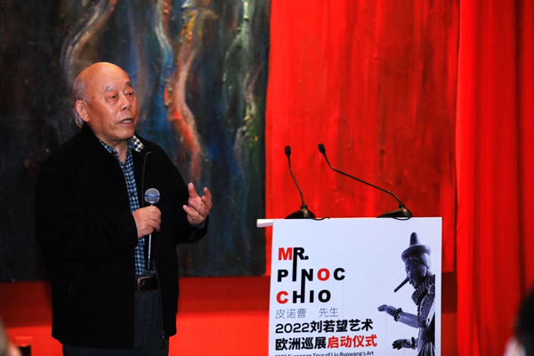 2022年3月12日下午,刘若望艺术2022欧洲巡展启动仪式在北京渡渡美术馆举行,新作《皮诺曹先生Mr.Pinocchio》组雕正式发布。这是这组作品首次以完整的形态呈现在公众面前,其创作灵感源自经典童话人物皮诺曹。启动仪式之后,“皮诺曹先生”将奔赴万里之外,开始它的欧洲巡游之旅。