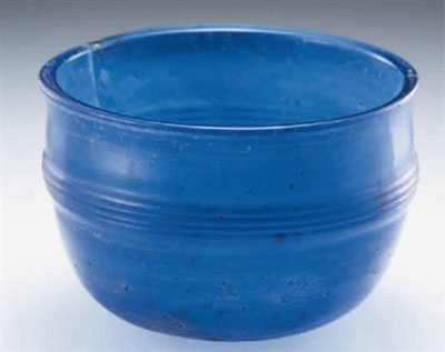 西汉蓝色弦纹玻璃杯。清华大学艺术博物馆供图