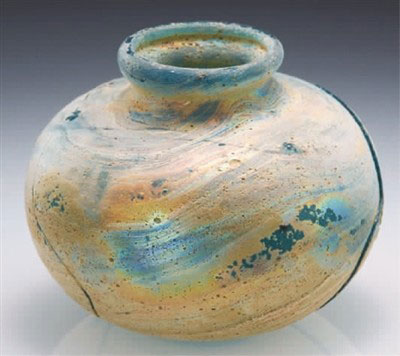 一件广西贵港西汉墓出土的蓝色弦纹玻璃杯,历经2000多年沧桑,依然散发着美丽的光泽。不同于西方钠钙玻璃和中国北方铅钡玻璃,在中国南方的广西、广东等地,出土了许多钾玻璃制品,反映了当时南方沿海地区通过海上丝绸之路与东南亚和南亚往来贸易之繁荣。