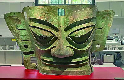 三星堆遗址出土的世界最大的青铜面具。本报记者周洪双摄/光明图片