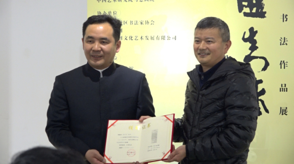 北京杏坛美术馆馆长黄和平向晏晓斐颁布捐赠证书