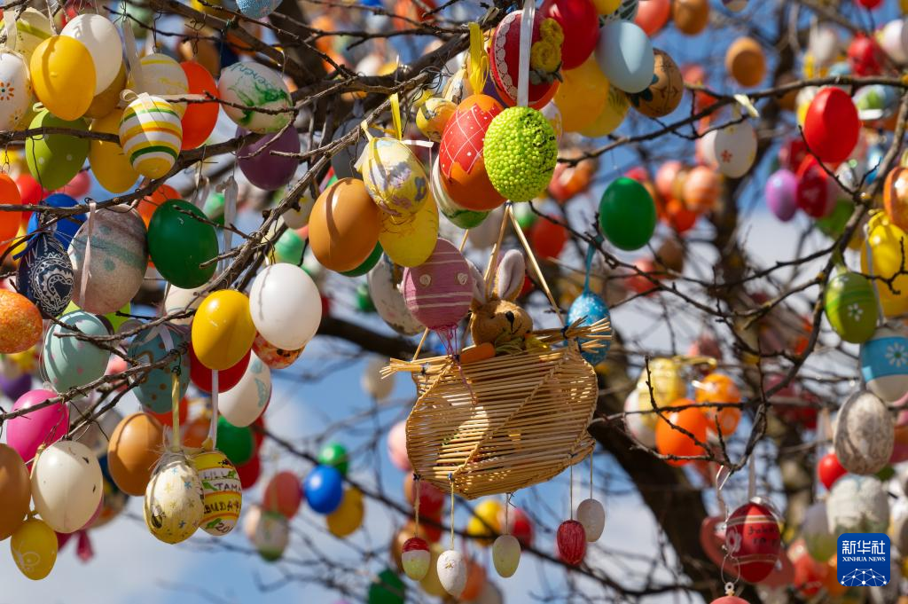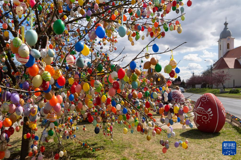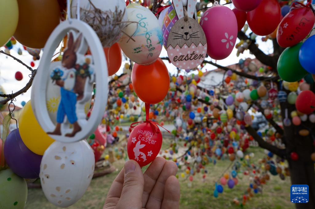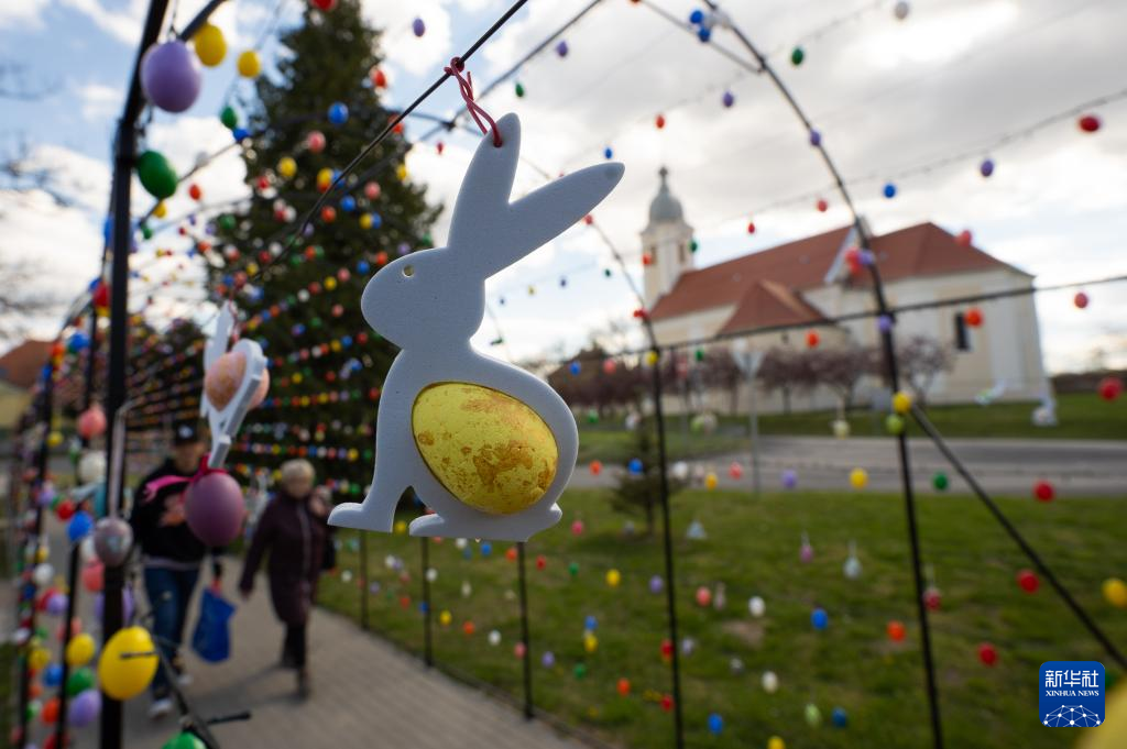 这是4月11日在匈牙利凯特海伊拍摄的复活节装饰。新华社发(弗尔季·奥蒂洛摄)