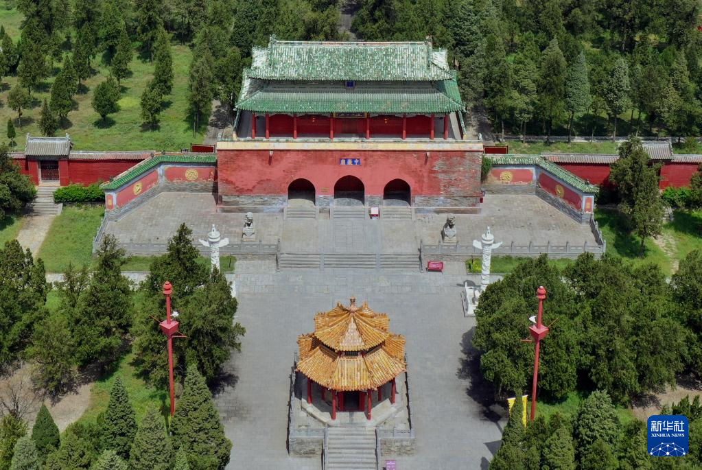 这是登封“天地之中”历史建筑群中的中岳庙(4月7日摄,无人机照片)。