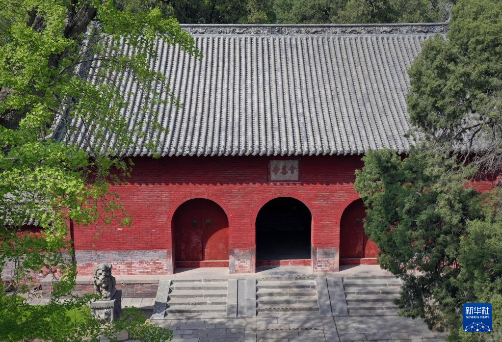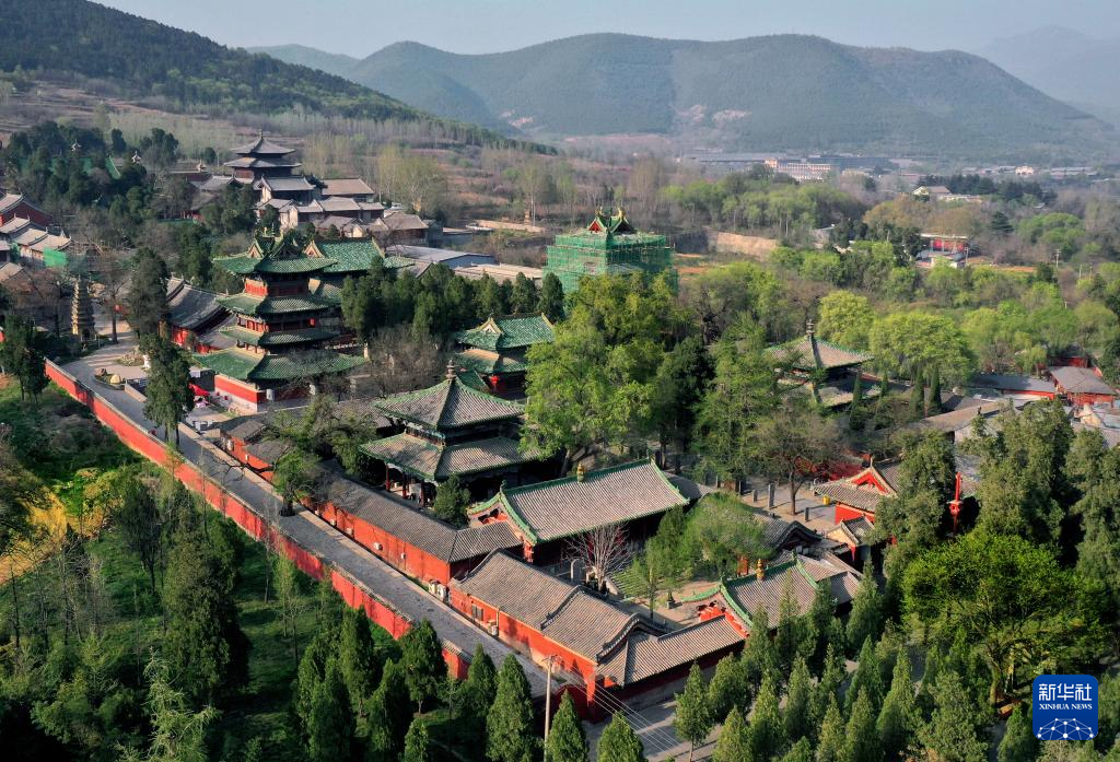 这是登封“天地之中”历史建筑群中的会善寺(4月7日摄,无人机照片)。