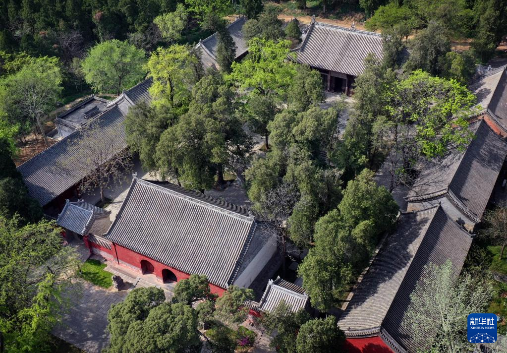 这是登封“天地之中”历史建筑群中的少林寺常住院(4月7日摄,无人机照片)。