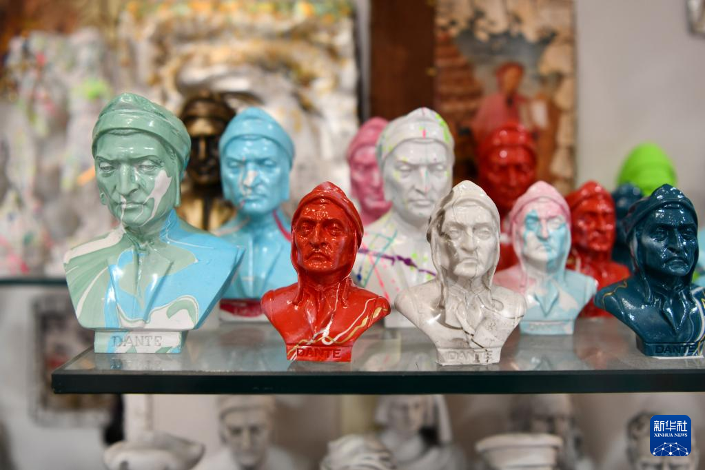 这是4月14日在意大利佛罗伦萨一家商店拍摄的但丁纪念品。