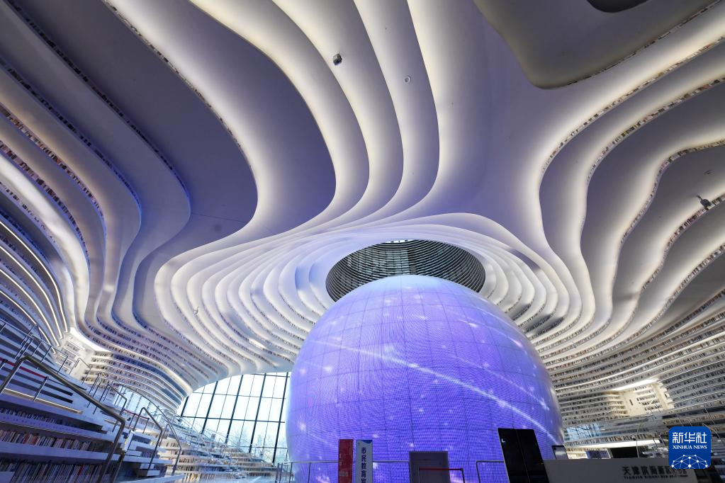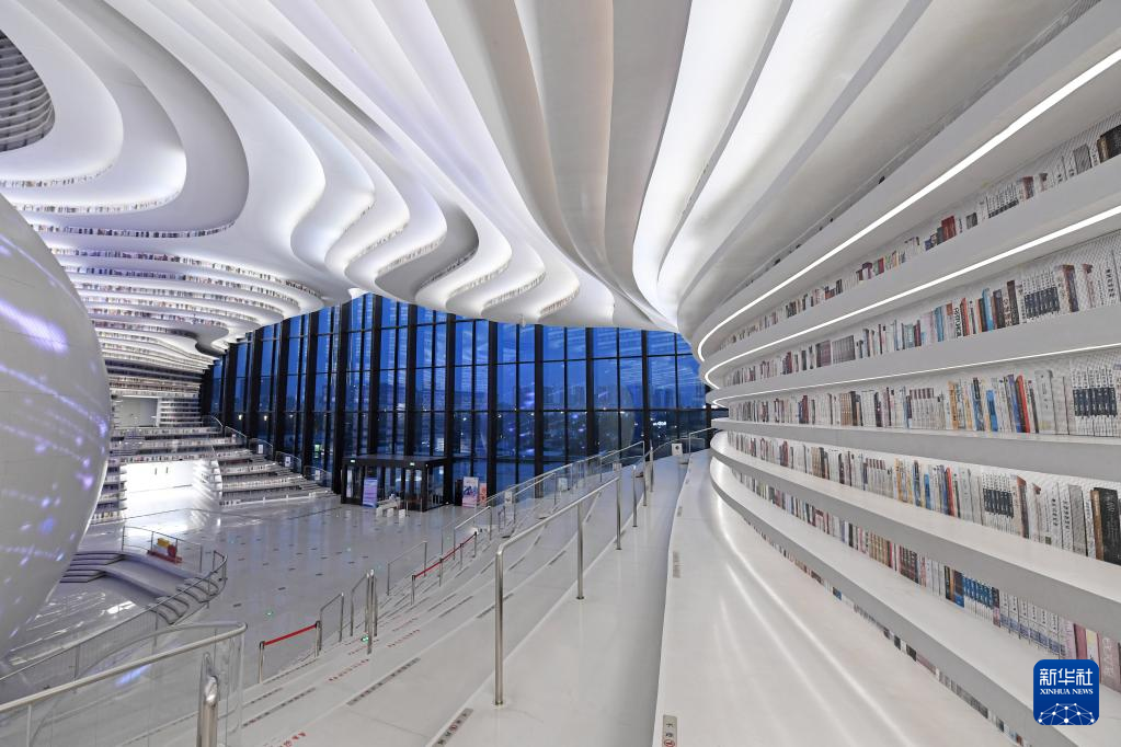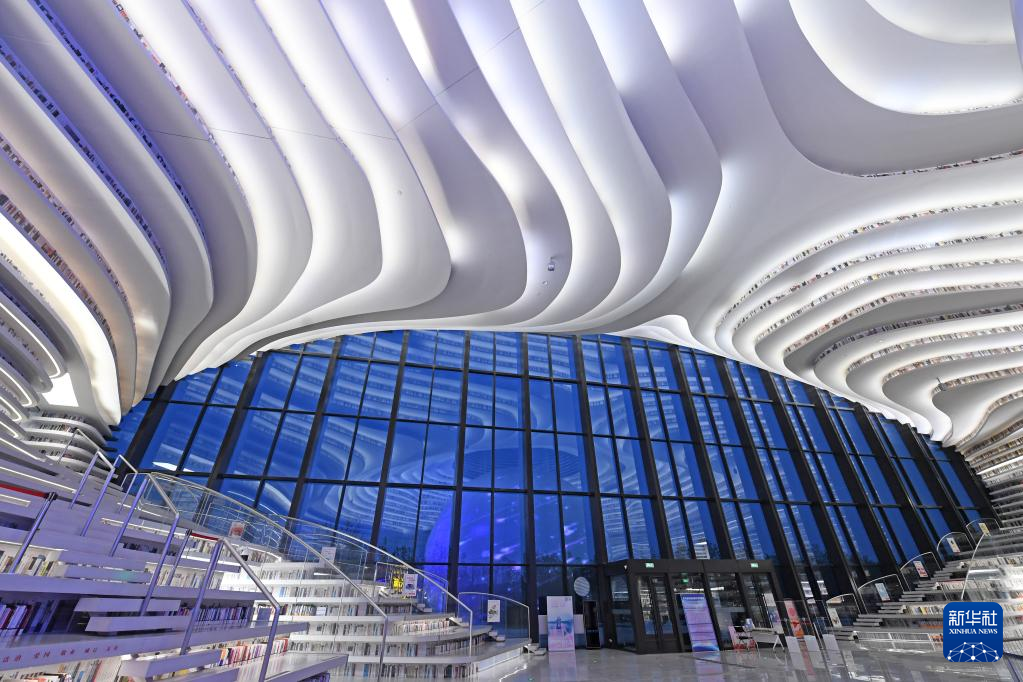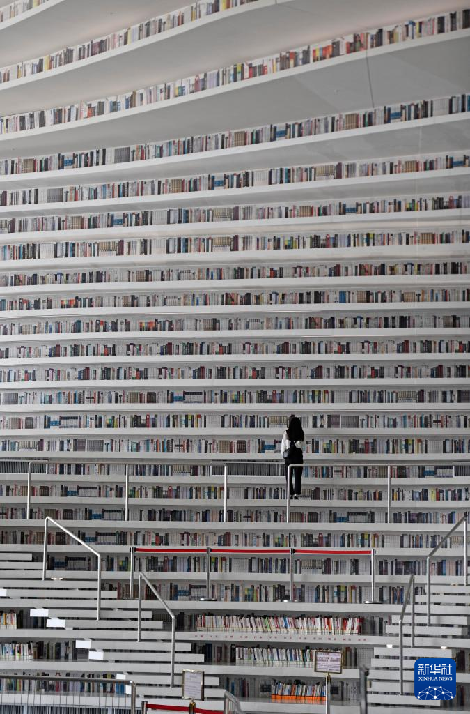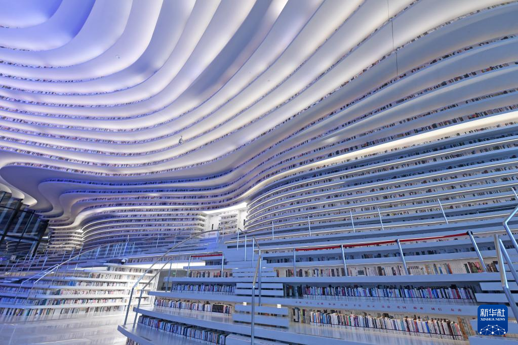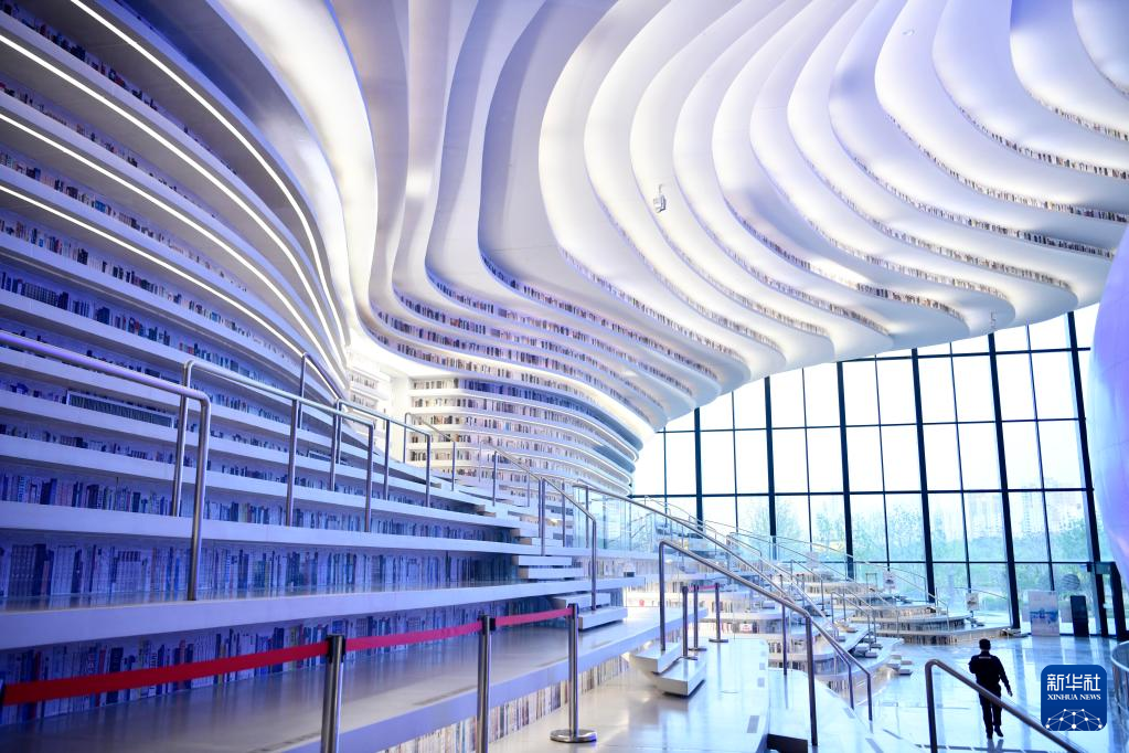 这是4月20日拍摄的天津滨海新区图书馆内景。