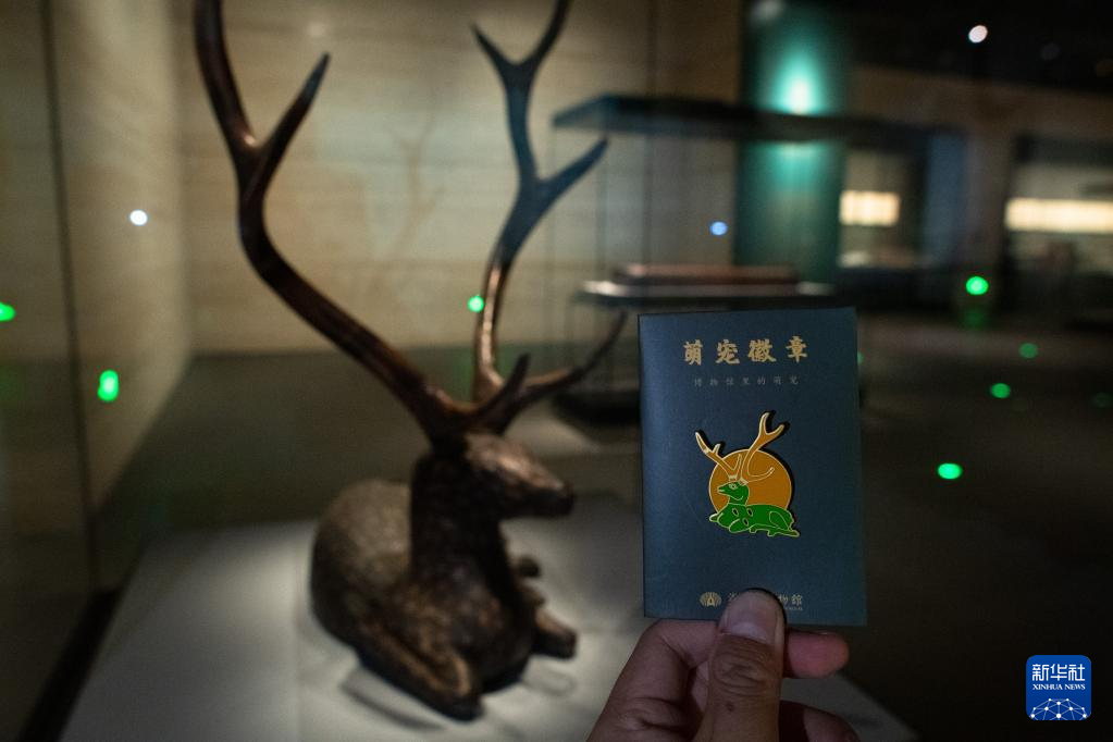 5月12日拍摄的彩绘漆木卧鹿文创徽章。