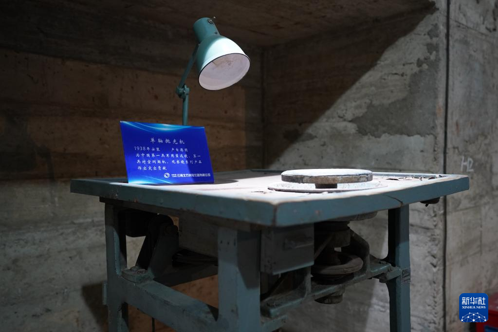 这是5月16日拍摄的中国光学历史博物馆内收藏的一台单轴抛光机。