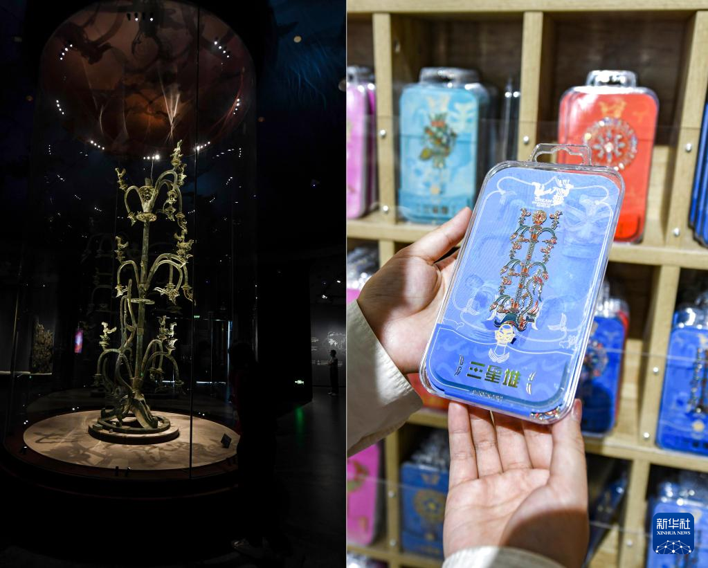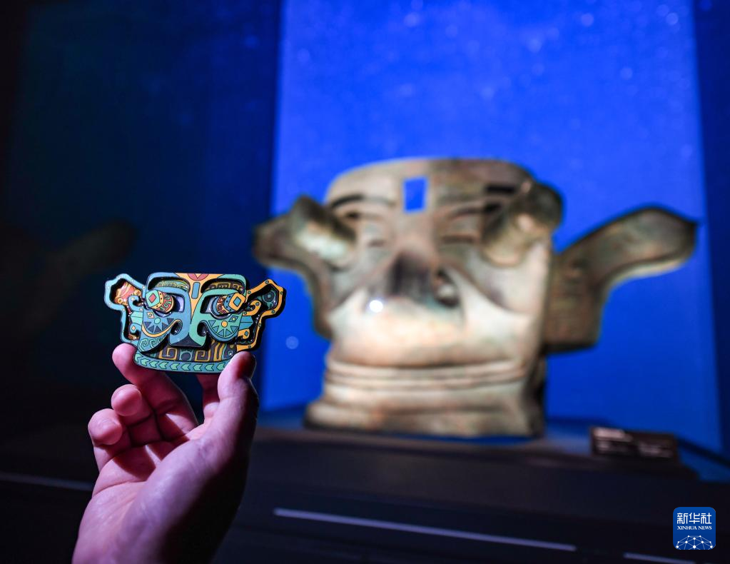 近年,三星堆遗址重要考古发现成果陆续公布,带动三星堆博物馆的文创产品设计销售热潮,一些文创产品取材于发掘出土的金面罩、青铜器等文物,受到人们的欢迎。