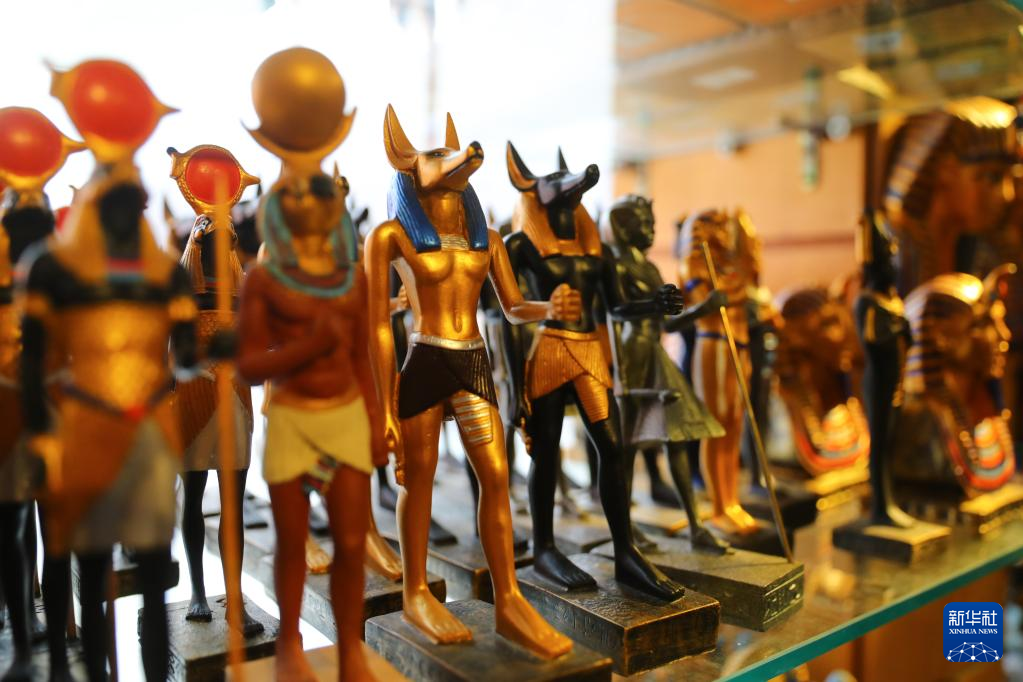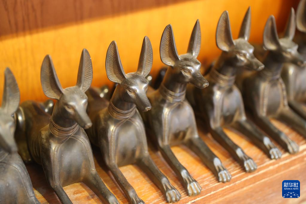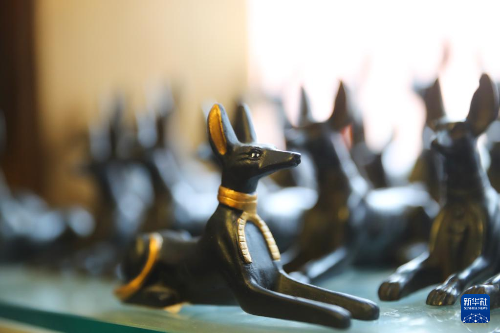 这是5月14日在位于埃及开罗的埃及博物馆纪念品店拍摄的“阿努比斯”雕像文创产品。