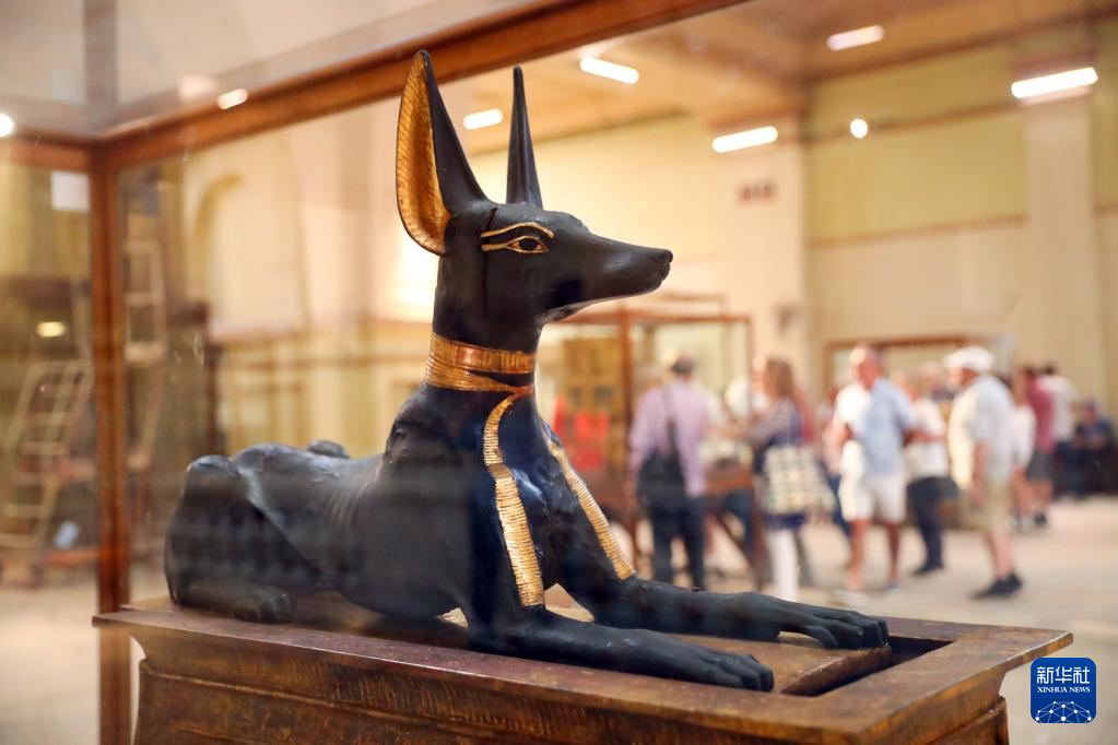 这是5月14日在位于埃及开罗的埃及博物馆拍摄的法老图坦卡蒙墓中出土的“阿努比斯”雕像。