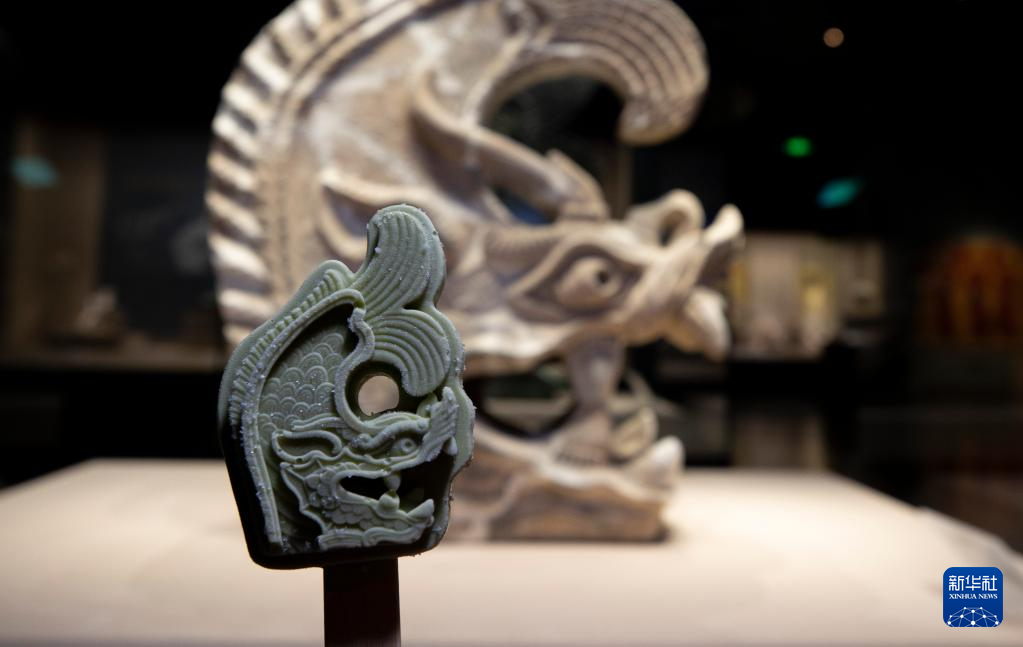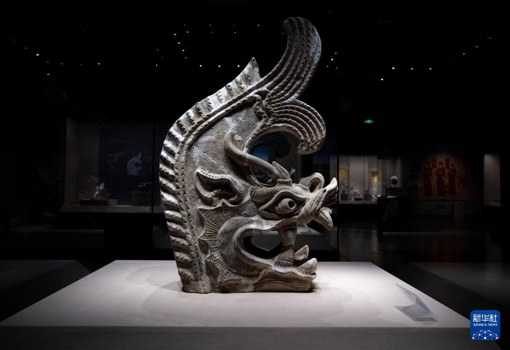 这是5月16日拍摄的宁夏博物馆的馆藏文物灰陶鸱吻 。