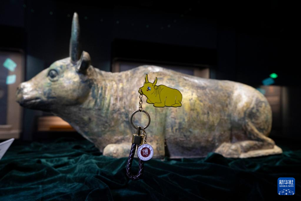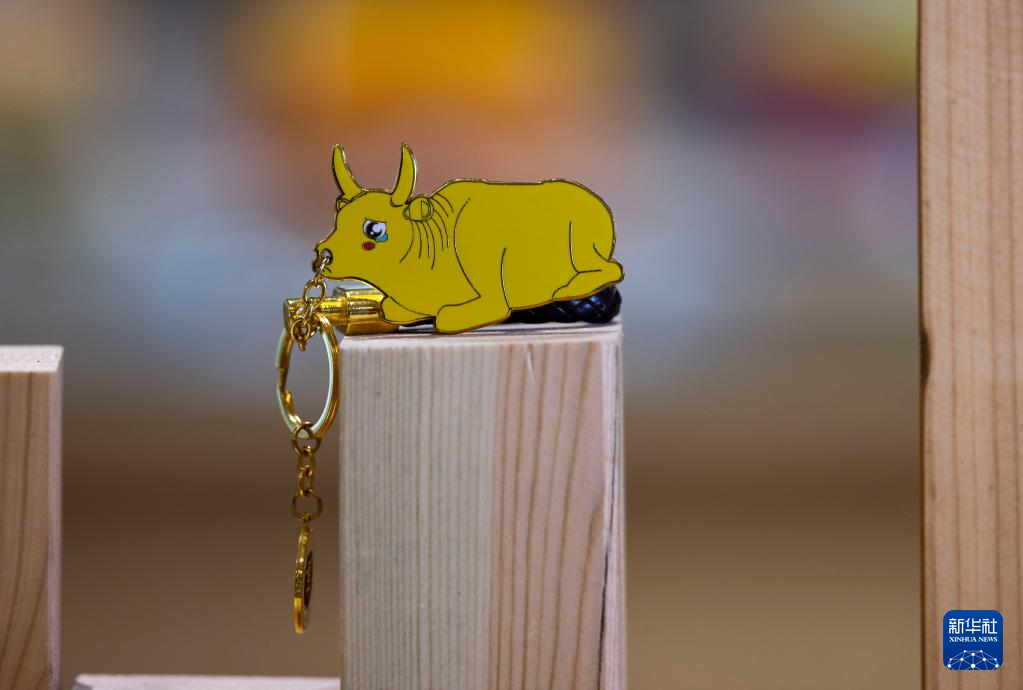 这是5月16日拍摄的宁夏博物馆的文创产品鎏金铜牛钥匙链。