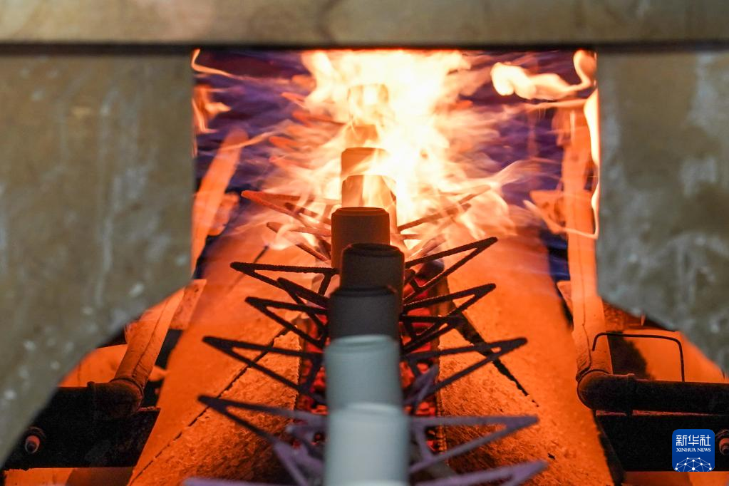 在江苏高淳陶瓷股份有限公司生产车间,陶瓷产品在进行上釉前的加温(5月12日摄)。