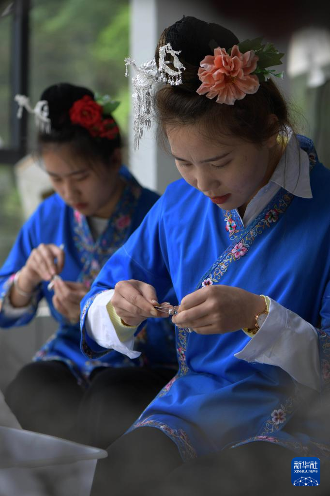 匠心传承,指尖人生。经过邰引岩传帮带,当地附近村寨有60余名村民先后学艺出师,成为苗乡侗寨新一代银饰锻制技艺的传承人。