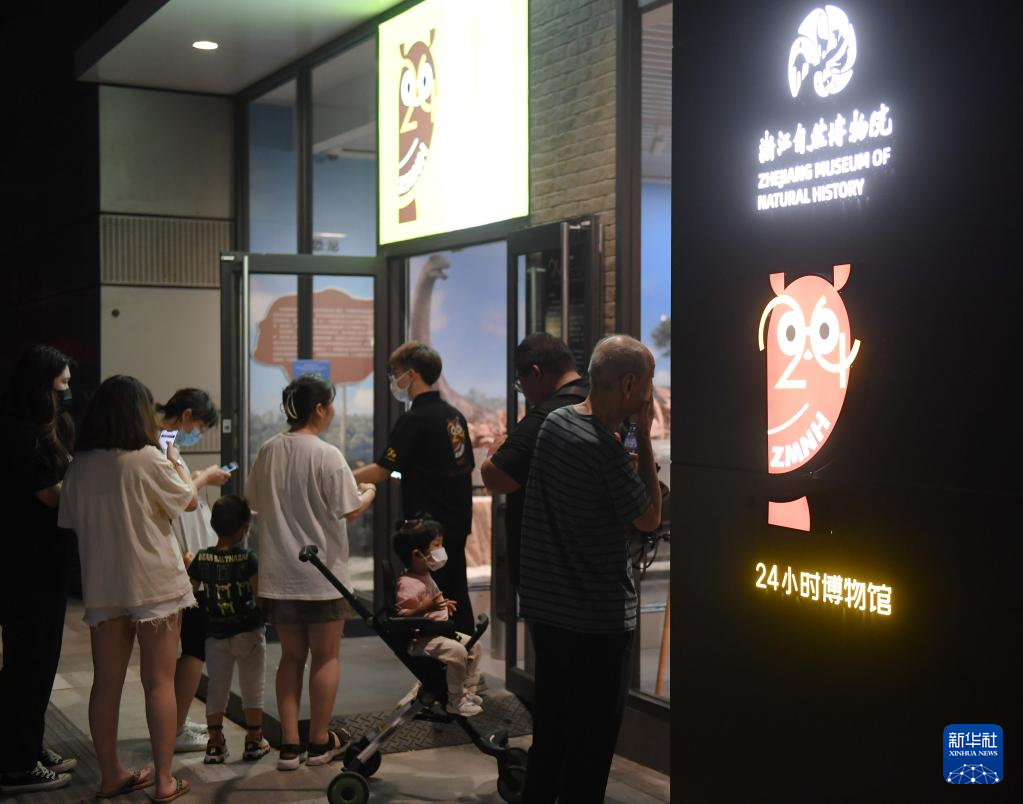 当日,“24小时博物馆”在位于杭州的浙江自然博物院开馆,馆内设置多个展示区及互动体验区,并在周末开展研学讲座,丰富中小学生的课余文化生活。