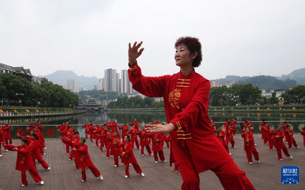 6月11日,在重庆市黔江区武陵水岸,太极拳爱好者在展示太极拳。新华社发(杨敏摄)