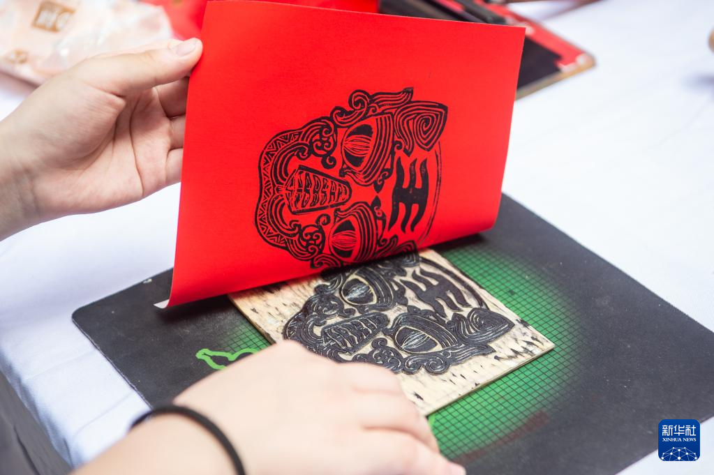 6月11日,市民在体验木刻版画。新华社发(伍志尊摄)