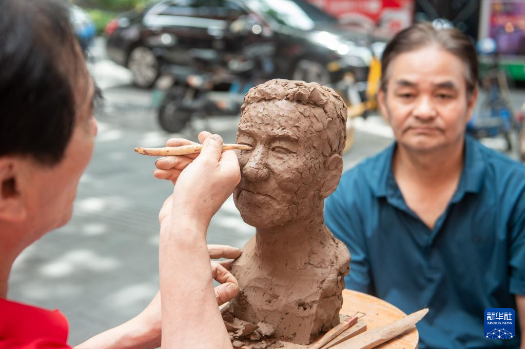 6月11日,武汉泥塑传承人胡作林在制作泥塑。新华社发(伍志尊摄)