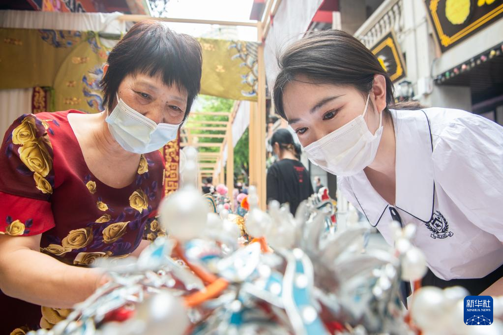 6月11日,2022年武汉市“文化和自然遗产日”非遗宣传展示主场活动暨江岸区第四届云上非遗节在武汉市吉庆民俗街举行,近60项非遗项目参与非遗市集展示。