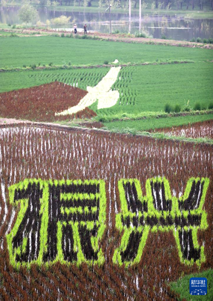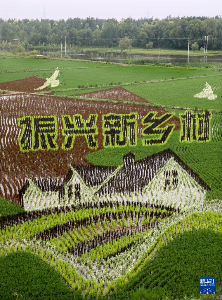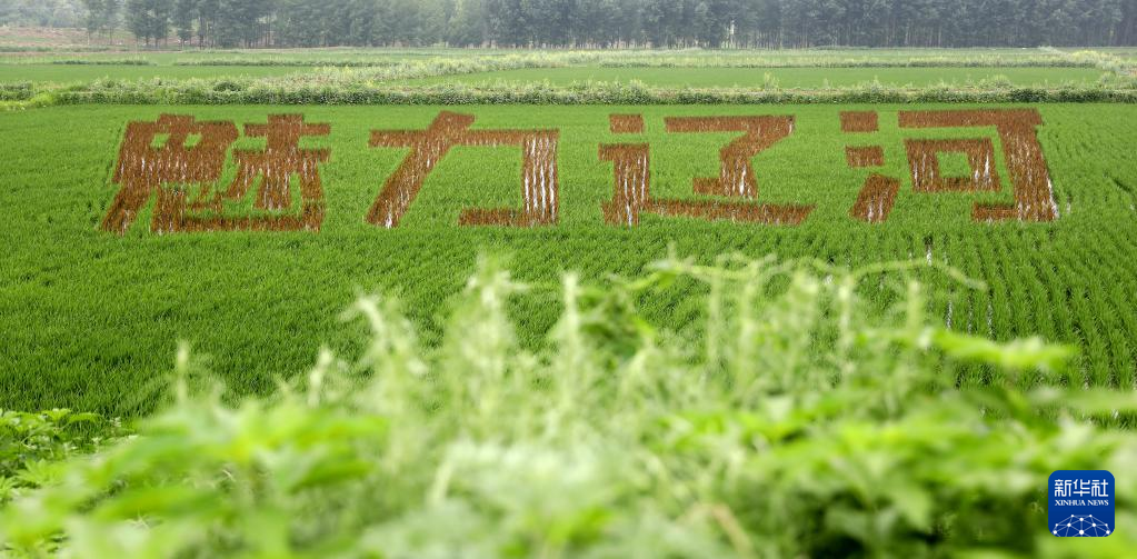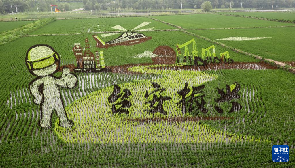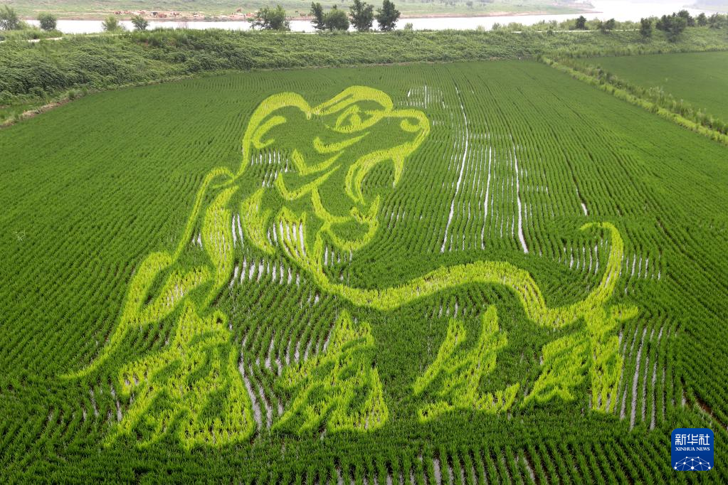 夏至时节,辽宁省鞍山市台安县辽河文化旅游景区里的稻田画开始进入观赏期,园内题材多样的稻田画成为一道别致的乡村景观。