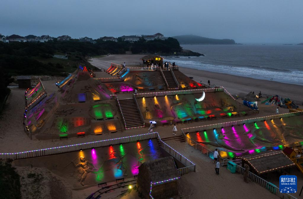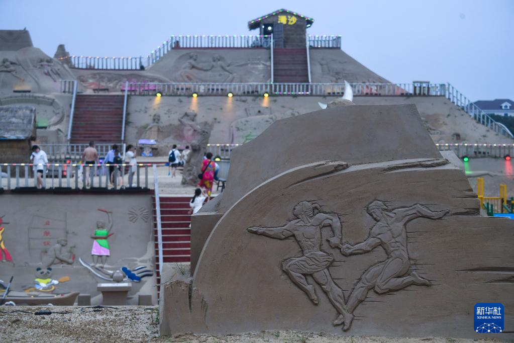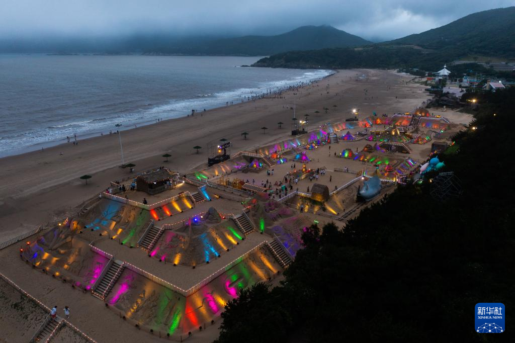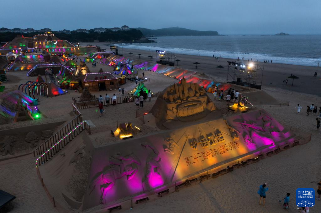 6月28日,夜色中的沙雕展示区被灯光点亮(无人机照片)。