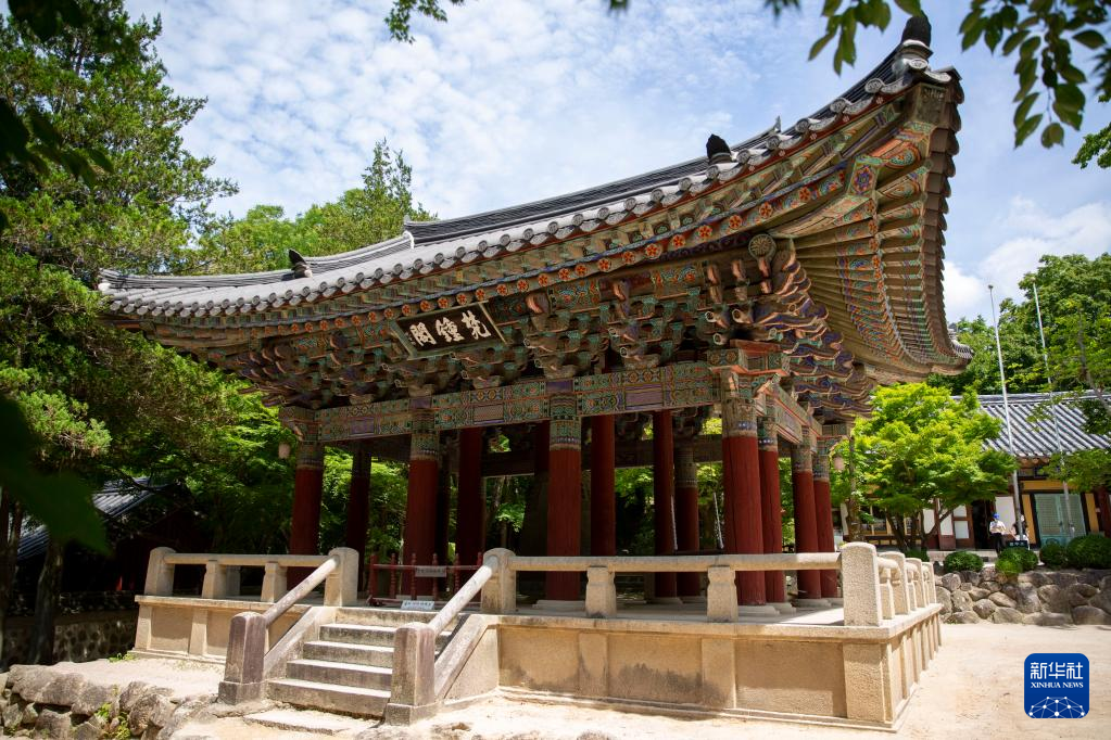7月3日在韩国庆州市世界文化遗产佛国寺拍摄的梵钟阁。